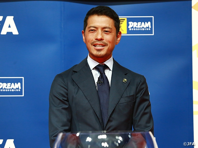 最初に決定したカードは、マッチナンバー77(鹿島アントラーズvsサンフレッチェ広島)の勝者とヴァンフォーレ甲府による一戦です。田嶋会長は「鹿島と広島は強豪同士の対戦なので、どちらが勝つのか興味があるのと、甲府がここで一泡吹かせるくらいの気持ちでやってもらいたい」と熱い対戦に期待を寄せました。