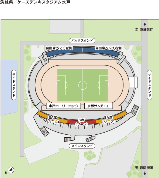 ※試合開催日は、JR常磐線「水戸」駅北口4番乗り場より、茨城交通バス「ケーズデンキスタジアム水戸」行