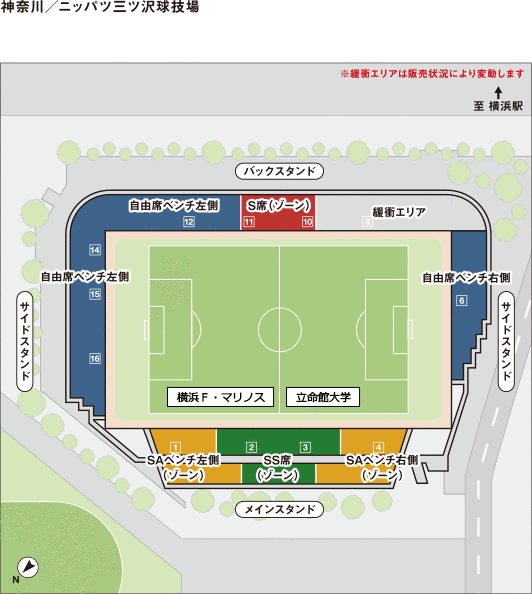 ■JR「横浜」駅西口より、市営バス・相鉄バスで「三ツ沢総合グランド入口」下車、徒歩約2分