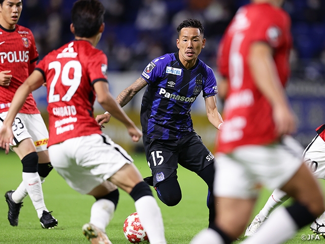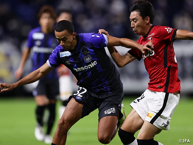 両チームは16日のリーグ第32節で対戦。ホームの浦和は圧倒的に攻めながらゴールを挙げられず、後半アディショナルタイムにPKで先制したものの、直後にPKを献上して1-1で引き分けた因縁がありました。そんな中で浦和は、前半10分、こぼれた球を回収した平野佑一選手が守備ラインの裏へ抜け出したキャスパー・ユンカー選手にパス。ユンカー選手がペナルティーエリア内へ運んで左足で先制点を挙げました。前半42分には山中亮輔選手の左クロスを江坂任選手が頭で落とし、関根貴大が左足シュートで2-0とリードを広げました。後半は途中からチアゴ・アウベス選手、倉田秋選手と攻撃の駒を投入してきたG大阪に押し込まれる場面もありましたが、GK西川周作選手の好セーブや、全員が最後までハードワークして体を張った守備で、無失点でタイムアップ。