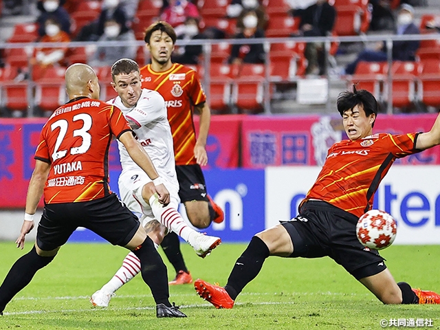 後半開始早々の52分、マッシモ・フィッカデンティ監督は3枚の選手交代カードを切ります。普段サイドから中央に切り込んでいた森下龍矢選手を中央に寄せ、クロスを徹底的に集めるかたちを取りましたが、流れを引き寄せることはできません。62分にアダム・タガート選手のミドル弾で3点目を失い、だめ押しをされてしまいました。