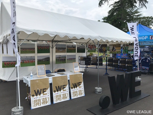 2021年に開幕した日本初の女子プロサッカーリーグWEリーグのPRブースです。写真展や開幕マッチボール展示の他、