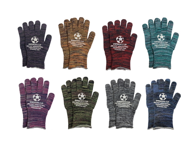 12月19日(日)に開催する天皇杯 JFA 第101回全日本サッカー選手権大会 決勝の会場では、場外を中心にさまざまなブースやグッズ販売を行います。なお、試合にご来場いただいた皆さまには、使われなかった様々な糸をリサイクルしてできたカラフルな「天皇杯オリジナル手袋」をプレゼントします。
