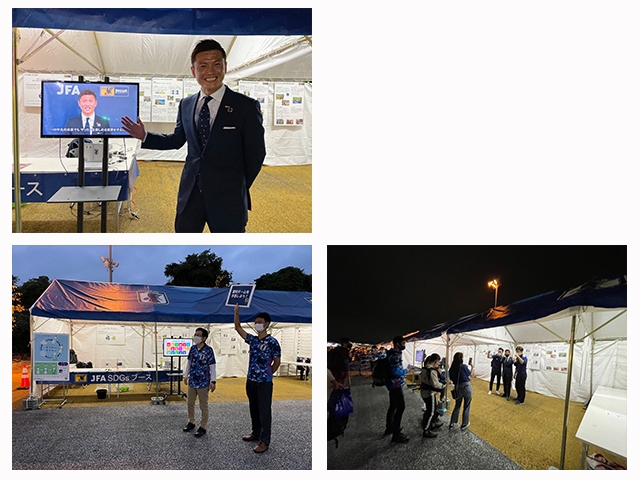 JFAが掲げるSDGsの重要課題(環境・人権・健康・教育・地域)に沿って、JFAの取り組みを紹介。映像とパネルで子どもでもわかりやすくSDGsについて知ることができます。また、ニチバンが取り組むセロハンテープや粘着テープ等の巻心を回収する「ニチバン巻心ECOプロジェクト」(巻き芯を回収し、資源として再利用。ぜひ会場にお持ちください!)等もご案内しています。