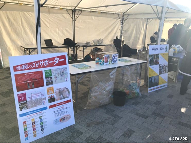 さらにサポーターの皆さまにも参加頂く取り組みとして、ペットボトル分別回収のブースを併設しました。浦和レッズと大分トリニータのSDGsの取り組みも紹介しながら、ペットボトルキャップで勝利チームを予想する仕掛けを実施しました。回収したペットボトルキャップは、リサイクル業者を通じて再資源化・販売され、その売却益は世界の子どもたちにワクチンを届ける取り組みに役立てられます。
