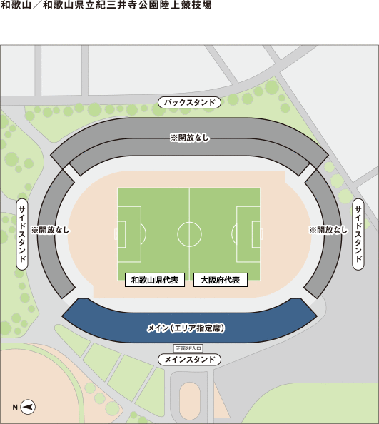 JR「和歌山駅」前より、和歌山バス1番乗り場より「海南藤白」「海南日限下」「マリーナシティー」/2番乗り場より「海南藤白」行きで、「競技場前」下車、徒歩約3分