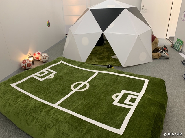 昨年に続き、JFAと東京藝術大学の「センサリールムームプロジェクト」として、日比野克彦(JFA社会貢献委員会委員長/東京藝術大学学長)の監修のもとに、お子さんやご家族が安心して過ごせるように、ビーズクッション、イヤーマフ、リラックスボックスなどを設置いたします。