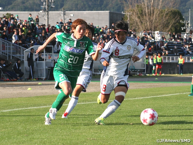 三重県の上野運動公園競技場での第1試合では、今季のなでしこリーグ2部で無敗優勝を果たして初の1部昇格を決めたノジマステラ神奈川相模原(なでしこ2部/神奈川)と、早稲田大学(関東5/東京)が対戦しました。