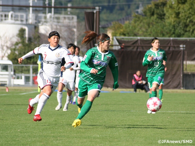 プレナスなでしこリーグ1部と2部に所属するチームが占める3回戦では、なでしこ1部同士の試合もあります。伊賀FCくノ一(なでしこ1部/三重)は、浦和レッズレディース(なでしこ1部/埼玉)と対戦。伊賀FCはここ2シーズン浦和とリーグ戦で4度戦い、いずれも無得点で敗れています。第36回大会(2014年度)の準々決勝で戦ったときも0-2で4強への道を阻まれているだけに、今回の対戦は、まずは1点を挙げたいところ。初戦で異なる6選手がゴールした浦和の攻撃陣を抑えた上で、敵陣に攻め込むことが要求されます。一方、前回大会で準優勝の浦和は今シーズン、リーグ8位に。なでしこリーグカップ1部は準決勝で敗れるなどタイトル逃しているため、今大会には強い気持ちで臨みます。