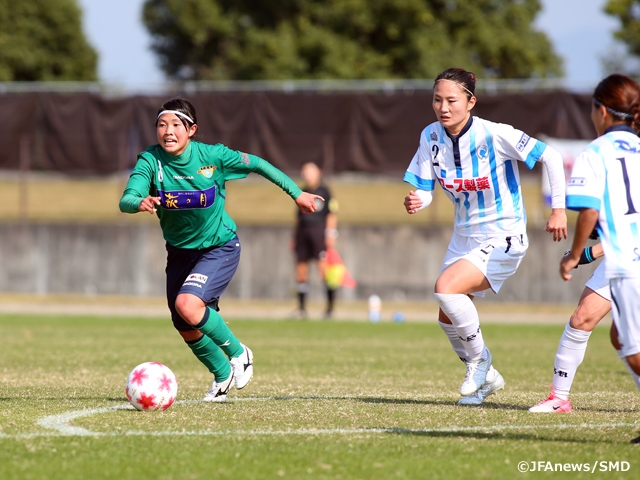 スフィーダ世田谷FC(なでしこ2部/東京)と対戦したジェフユナイテッド千葉レディースU-18(関東/千葉)は、DFラインを高く保ち、格上の相手に対抗します。すると29分、CKのこぼれ球を椎野彩香選手が押し込んで先制に成功します。後半は防戦一方となりましたが、体を張った守備でこの1点を死守し、「イメージしていたプラン通りに試合を進めることができた」(藤井奈々監督)千葉U-18が3回戦へ駒を進めました。