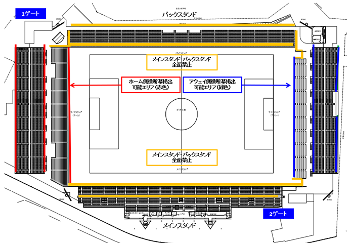 ※大旗を振っての応援は、両ゴール裏エリアにてお願いします。