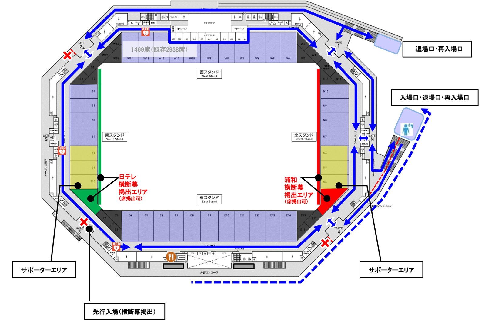 サポーターエリア及び横断幕掲出エリア