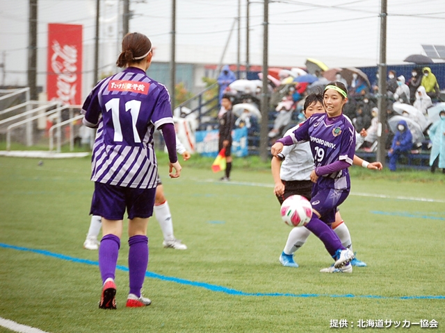 北海道予選は北海道女子サッカーリーグと合同で開催されることとなり、同リーグに所属する6チームがトーナメント形式で対戦しました。前年度準優勝の札幌大学ヴィスタは、準決勝で北海道大谷室蘭高校に2-1と勝利し決勝に進出。ASC北海道レディース、そして前年度優勝チームである北海道文教大学明清高校を下して勝ち上がった北海道リラ・コンサドーレとの決勝では、竹山智恵選手が2ゴールを挙げるなど終始試合をコントロールし、5-1と大勝して初優勝。チャレンジリーグEASTに所属するノルディーア北海道とともに皇后杯出場権を獲得しました。