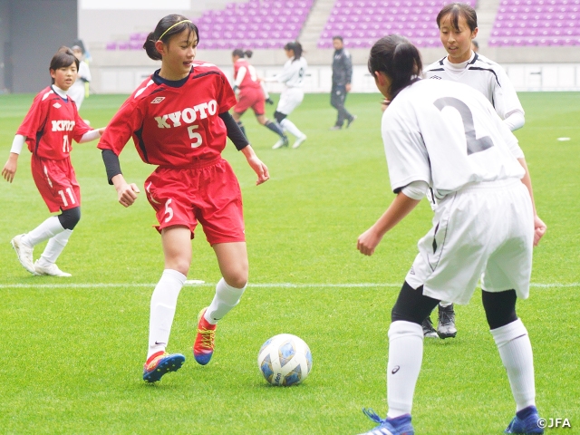 今回の女子中学生女子サッカー選手フェスティバルは、この女子中学生のサッカー離れの改善策の一つとして、ゲーム環境が整備されつつある女子チーム(クラブチーム、女子サッカー部)以外で、中体連に所属し男子選手の中でプレーする環境下の女子選手にゲーム機会を創出することを目的に、皇后杯 JFA 第42回全日本女子サッカー選手権大会の前座イベントとして、開催地である京都FAによって実施されました。
