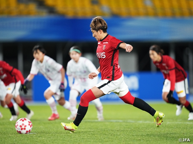 今大会のレッズは、締まった好ゲームを粘り強く戦い、勝利を手にしています。4回戦で伊賀FCくノ一三重(なでしこ1部/三重)を1-0で破ると、準々決勝でサンフレッチェ広島レジーナ(WEリーグ/広島)、準決勝でセレッソ大阪堺レディース(なでしこ1部/大阪)を、それぞれ2-0、1-0で下しました。