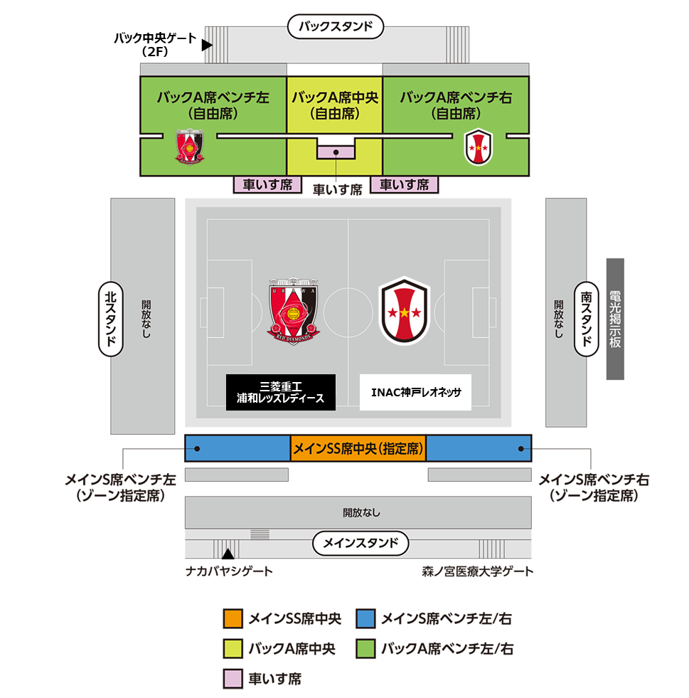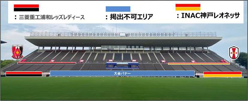 三菱重工浦和レッズレディースの応援グッズを身に付けたお客様は、バックA席ベンチ右のエリアへはご入場いただけません。