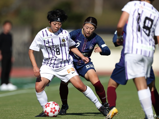 なでしこ2部で3位の岡山湯郷Belle(中国/岡山)と、2回目の皇后杯出場となる札幌大学ヴィスタ(北海道)の対戦は、21.5℃の穏やかな陽気の下で行われました。