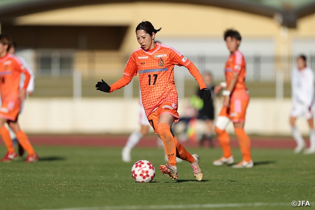 前半はベンチで見ていて、DFラインの裏に走り込んでボールを受けられたらいいなと思い、試合に入りました。特に1点目はその狙い通り、裏に抜けてそのままゴールすることができました。2回戦の伊賀FCくノ一三重は自分たちより実力があるのは当たり前ですが、チャレンジャー精神を持ってどんな戦い方をすればいいのか考え、この1週間で実践できたらいいと思います。その先の女子インカレでも、昨季はベスト4だったので、達成したことがない優勝を目指していきたいです。