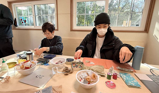 アップリケのように縫っても、ボンドで貼るだけでもOK。おしゃべりしながら、ひとときをご一緒しましょう。