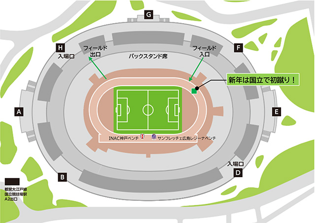 ■ 参加者入口:試合終了後~表彰式開始前の時間に1層バックスタンド フィールドエリア入口 (南側)にお集まりください。