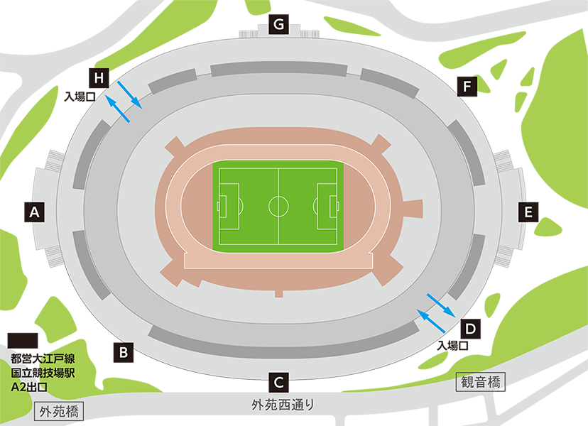 | Hゲート | 北サイドスタンド1層/ゴール裏サポーター席(北側) |