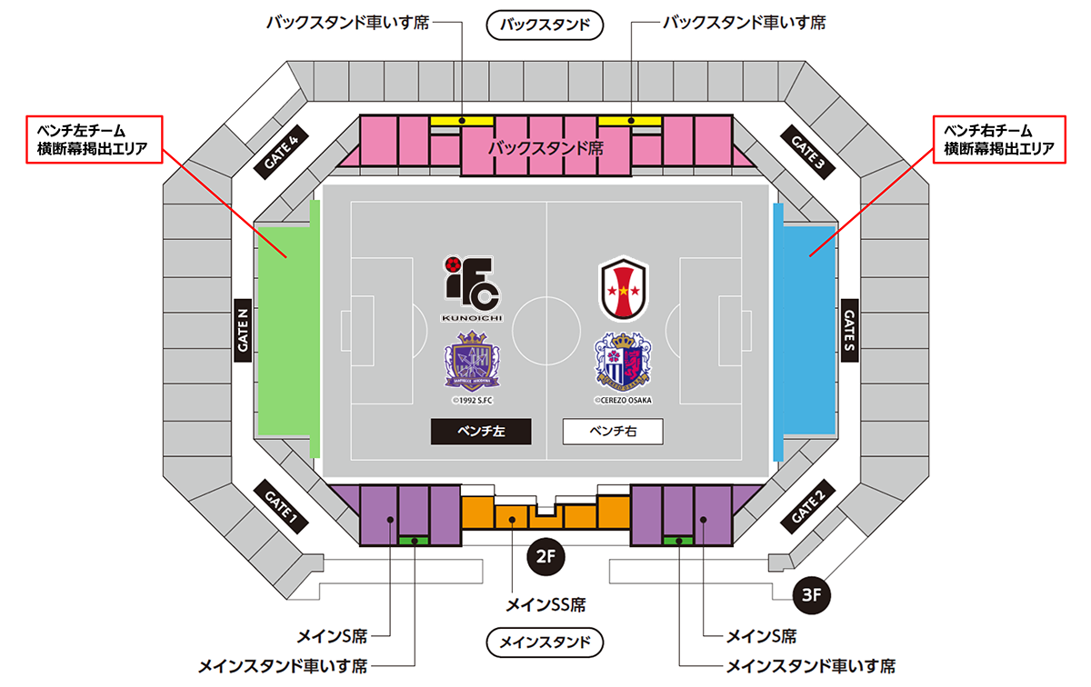 ※上記はバックスタンド席(2階)応援エリアにてお願いいたします。