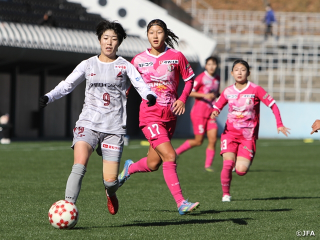 前半は、まずセレッソ大阪ヤンマーレディース(WEリーグ/大阪)がテンポよくパスをつないで攻撃を仕掛け、途中からは朝日インテック・ラブリッジ名古屋(なでしこリーグ1部/愛知)が人数をかけた攻撃で相手ゴールに迫る展開となります。