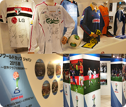 前回大会優勝のレアルマドリード、2011年大会優勝のFCバルセロナ、2008年優勝のマンチェスターユナイテッドなど出場クラブ選手のサインが入ったユニフォーム、2005年大会以降に使用された公式ボール、そして日本、UAE、モロッコで開催された過去10大会の名場面を再現したフォトパネルを展示。12月5日(土)、6日(日)および7日(月)には、FIFAクラブワールドカップ ジャパン 2015トロフィーが特別に登場します。