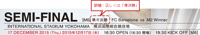 マッチナンバー6(M6)におけるチケット券面誤植のお詫びと入場時の対応について FIFAクラブワールドカップ ジャパン 2015