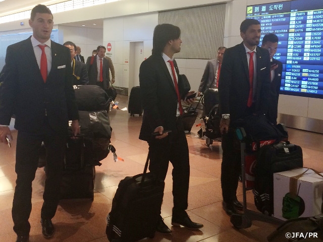 明日12月10日(木)に開幕するFIFAクラブワールドカップ ジャパン 2015に南米代表で出場するリバープレート(アルゼンチン)が、8日(火)に来日しました。選手・スタッフ約50名がチームの初戦である準決勝へ向けて調整に入ります。準決勝は16日(木)に大阪長居スタジアムで開催され、開幕戦の勝者とTPマゼンベ(コンゴ民主共和国/アフリカ代表)が対戦します。開幕戦はサンフレッチェ広島(日本/開催国代表)とオークランド・シティーFC(ニュージーランド/オセアニア代表)です。