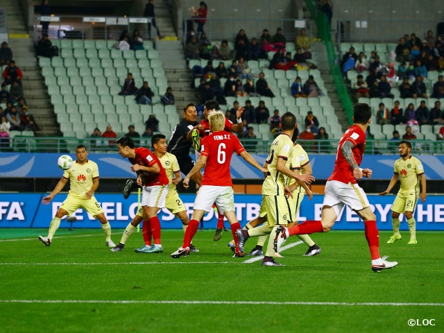 スコアレスで迎えた後半、クラブ・アメリカが先手を取ります。55分に右サイドを突破したベネデット選手のクロスにオリベ・ペラルタ選手が頭で合わせました。勢いづくクラブ・アメリカはテンポの良い攻撃を展開しますが、追加点は奪えません。対する広州は攻撃的な選手の交代カードを切ると、これが奏功します。80分にカウンターからパウリーニョ選手、ガオ・リン選手とつなぎ、最後はジョン・ロン選手がネットを揺らしました。さらにアディショナルタイム、CKからパウリーニョ選手がヘディングを叩き込み、土壇場で逆転。劇的な勝利を収めた広州が準決勝進出を決めました。