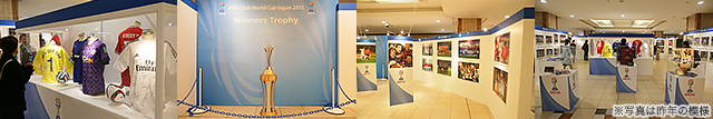 前回大会優勝のFCバルセロナ、今大会も出場する2014年大会優勝のレアル・マドリード、2005年大会優勝クラブのサンパウロFCなど出場クラブ選手のサインが入ったユニフォーム、過去大会に使用された公式ボール、そして昨年大会を含む日本、UAE、モロッコで開催された2005年大会以降の名場面を再現したフォトパネルを展示します。開幕直前の12月4(日)、5日(月)には、優勝トロフィーも展示される予定です。