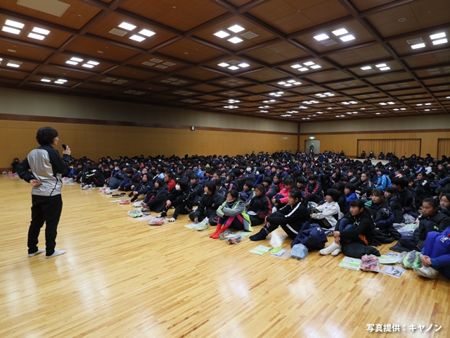 試合が終わった後、陸上競技場に隣接する武道場に選手たちが集まり、キヤノンVTR 上映や、ホクト食育セミナーが行われ、JFAナショナルトレセンコーチによるリスペクトワークショップでも、各都県の選手から、「色々なことに感謝して自分たちがサッカーができている」ということが発表されました。