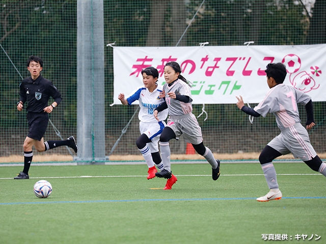 この大会の最終試合となる各順位決定戦では、春の冷たい雨の中、白熱した戦いが展開されました。特に優勝決定戦は、素早いプレッシャー、粘り強い1対1が随所に見られ、ハイレベルな攻防が繰り広げられ、少女たちが未来のなでしこへ逞しく成長している片鱗が伺えました。