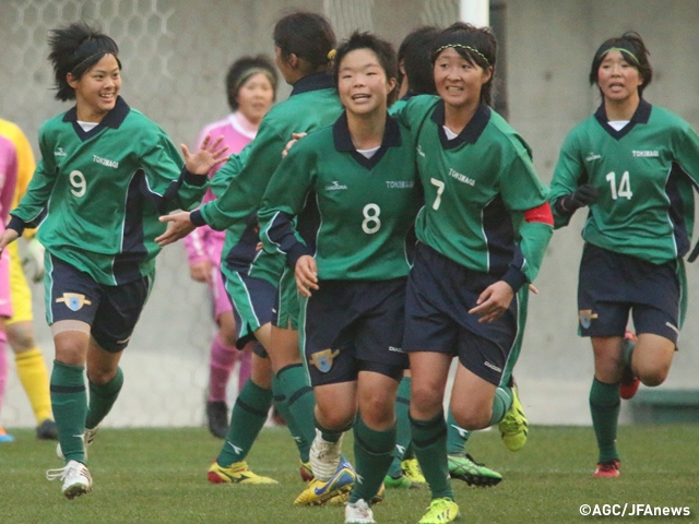 日ノ本学園の前に立ちはだかるのは、2年ぶり6回目の優勝を狙う常盤木学園です。日ノ本学園と同様、こちらも着実に勝利を積み重ねてきましたが、準決勝の藤枝順心高校(東海1/静岡)戦ではフィニッシュの精度を欠いて大苦戦。相手にリードを許しながらも、「前回大会で敗れた試合を何度も思い出し、この1年は最後まであきらめないチームになろうと意識してきた」(西川彩華選手)成果が表れ、後半のアディショナルタイムに追いつくと、PK戦を制して決勝進出を決めました。