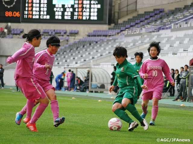 第24回全日本高等学校女子サッカー選手権大会は1月7日(木)、兵庫県のノエビアスタジアム神戸で準決勝2試合を行い、決勝に進む2チームが決定しました。