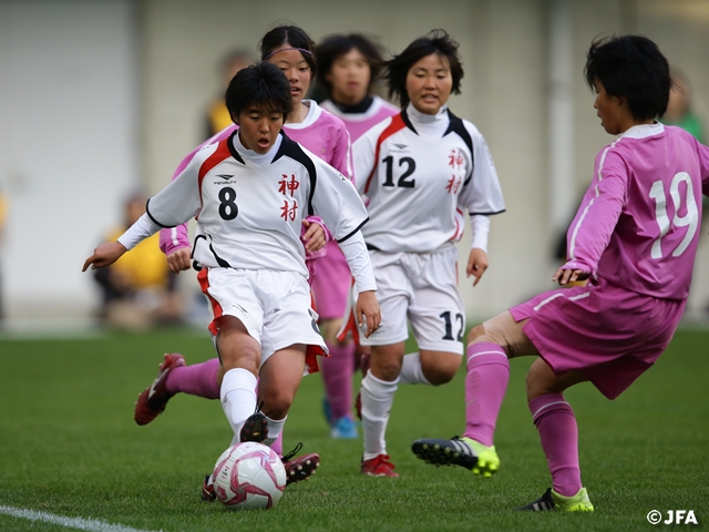 準決勝第1試合では、大商学園と藤枝順心が対戦。児野楓香選手のゴールで先制した藤枝順心が相手をシュート4本に抑え、決勝進出を決めました。続く第2試合は、神村学園が修徳を押し込む展開に。修徳守備陣の奮闘に手を焼く時間もありましたが、21分、23分と橋谷優里選手が立て続けに得点します。この後、相手の反撃をかわした神村学園が2-0で勝利し、決勝への切符をつかみました。