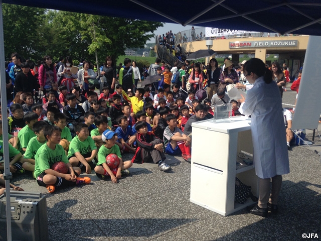 2014年4月26日(土)、晴天にめぐまれた中開催された”全日本少年サッカー大会 神奈川県大会 少年の集い(於:日産フィールド小机)”の会場内では、「アクエリアス U-12 フットボール ラボ」が実施されました。