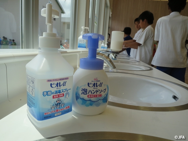 花王は、大会会場や選手宿泊施設に「ウルトラアタックNeo」や「ビオレu泡で出てくるハンドソープ」などを提供。食堂では、食事前に手洗いをしっかり行ってからおいしい食事を頬張る選手たちの姿が見受けられました。お土産としても花王の製品を配り、自宅に帰ってからも選手たち、保護者の方々の日々の練習をサポートしています。
