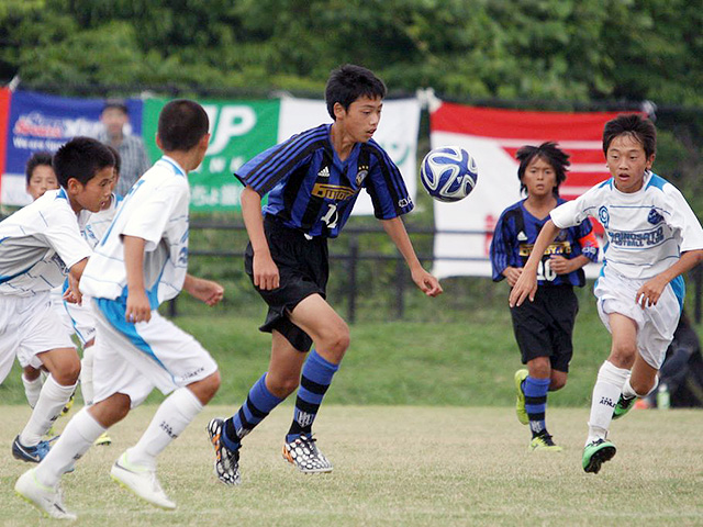 決勝は、ピッチ広くボールを動かして組織的なサッカーを展開するBUDDY・FCと、スピードと高いテクニックを持つ橋岡尚・橋岡拓の両選手を中心に、全員がハードワークする舞の里フットボールクラブ(舞の里)の対戦でした。立ち上がりの2分、クリアボールが相手に当たってゴールに入るという不運な失点を喫した舞の里でしたが、その後はお互いに一歩も譲らない白熱した展開が続きました。そんな中、試合の流れを一気に引き寄せたのが、BUDDY・FCのエース佐藤聡史選手。12分、日下部優哉選手からのクロスを豪快なヘディングシュートでゴールを奪います。これが合図になったかのように、ここからはBUDDY・FCのゴールラッシュ。前半で3得点、後半も攻撃の手を緩めずに4得点を追加して、見事優勝を果たしました。一方、敗れた舞の里も最後まで走り切るサッカーを展開。敗れたとは言え、その戦いぶりはすばらしいものでした。