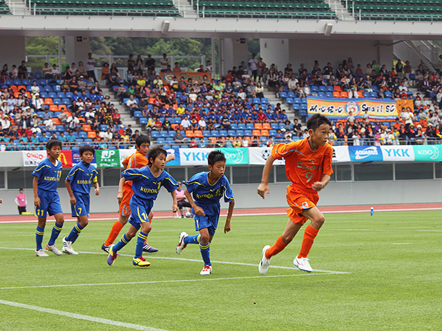 長崎県の決勝は6月15日、長崎県立総合運動公園陸上競技場で行われました。県内13地区の予選を勝ち抜いた24チームの頂点に立ち、さらには全国大会への切符を手にするチームを決めるこの試合。スネイルサッカークラブ(諫早市)は初戦を除いた全ての試合で先制されるも、逆転勝利を重ねてここまで這い上がってきました。一方の黒髪フットボールクラブジュニア(佐世保市)も決勝トーナメントでは2試合とも延長戦の末に勝利を掴むという粘り強さで勝ち進んできました。