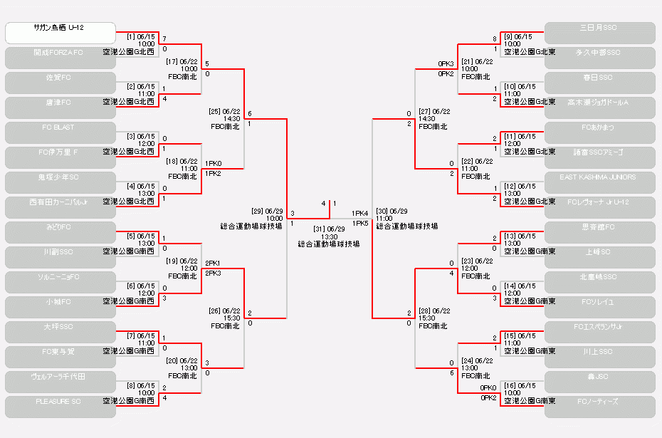 佐賀県決勝は、昨年優勝のサガン鳥栖U-12(サガン)と、準決勝でPK戦を制して勝ち上がったFCソレイユ(ソレイユ)の対戦になりました。