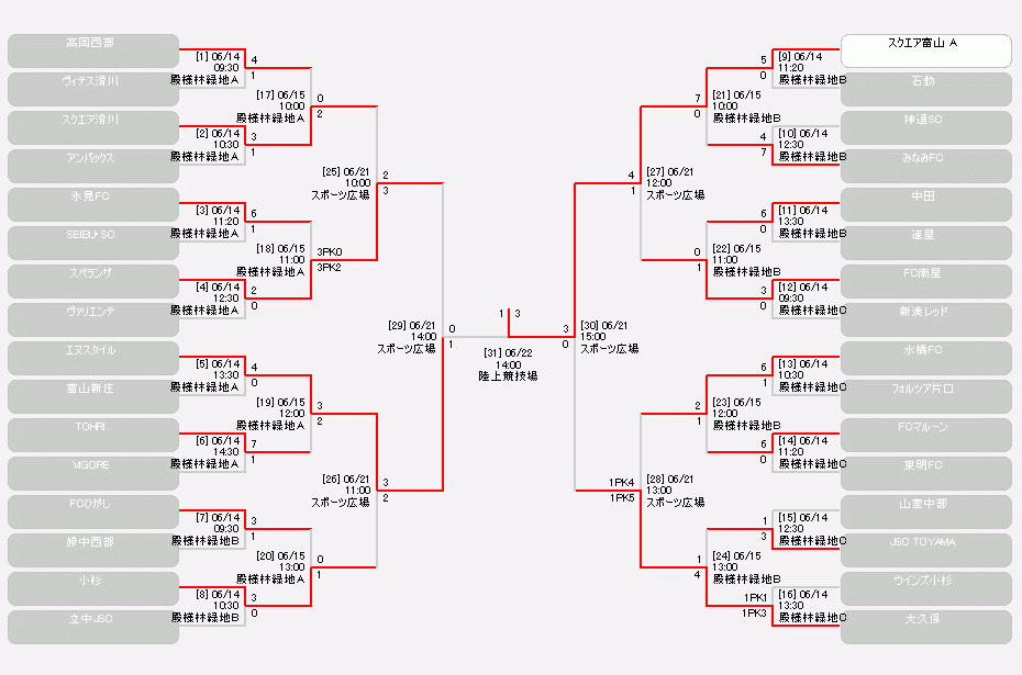 富山県大会は、スクエア富山FC U-12A(スクエア)が3-1でエヌスタイルU-12(エヌスタイル)を下し、4年ぶり2度目の優勝を果たしました。