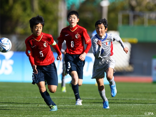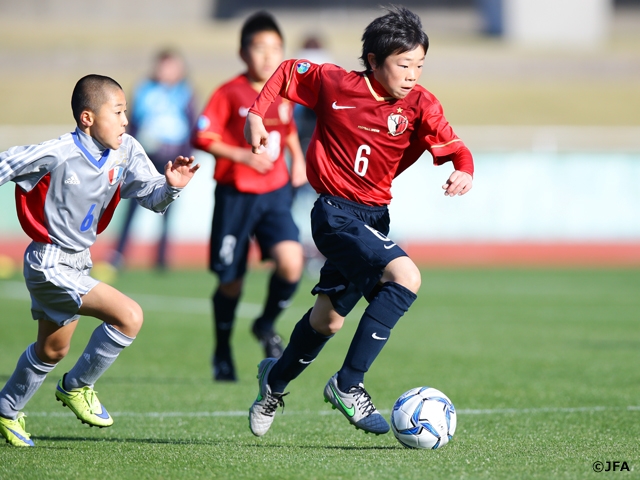 第39回全日本少年サッカー大会の決勝が12月29日(火)、鹿児島市の鴨池陸上競技場で開催されました。強い風が吹くものの快晴の中で行われた決勝は、鹿島アントラーズジュニア(茨城)とレジスタFC(埼玉)が対戦。ともに素早く体を寄せ、球際に厳しくボールを奪い合う熱いゲームになりました。
