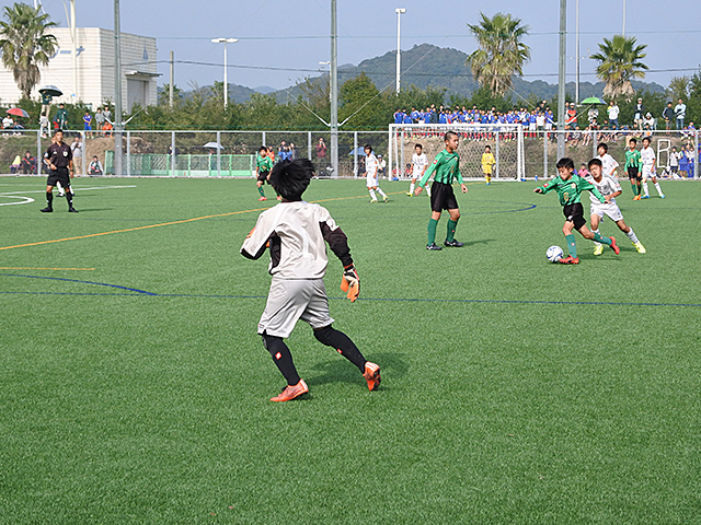 CLUB東福岡ジュニア・西南フットボールクラブ野芥とも緊張した中で始まった決勝戦では、「自分たちで考えて動く!」をチームコンセプトにしている東福岡が、しっかりとボールをつなぎ、相手ディフェンスの裏を狙うパスや精度の高いセンタリング等を駆使した攻撃を展開することができました。西南も何とか逆転を狙うべくボールを前に運ぼうと試みましたが、東福岡の堅いディフェンスを崩すことはなかなかできませんでした。本年度より県大会が11月開催となったため、これまで以上にスピーディで力強い試合が繰り広げられる決勝戦となりました。