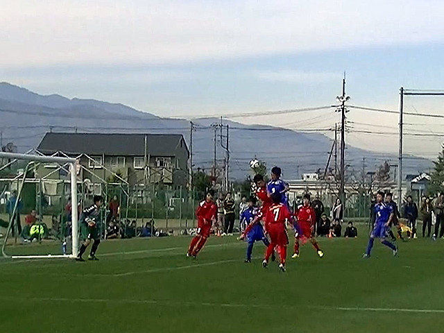 立ち上がりペースをつかもうと両チームとも、ロングボールを多用。それでも、Uスポーツクラブが押し気味にゲームを進めます。前半3分、Uスポーツが左サイドでフリーキックを得て、7番若林大翔選手の蹴ったボールは狙ったとおりにゴール前の9番小林練選手へ渡り、ヘディングシュートが決まり先制しました。ペースをつかんだUスポーツは13分にはDF5番白鳥稜汰選手が左サイドから30メートルのロングシュートを決めます。