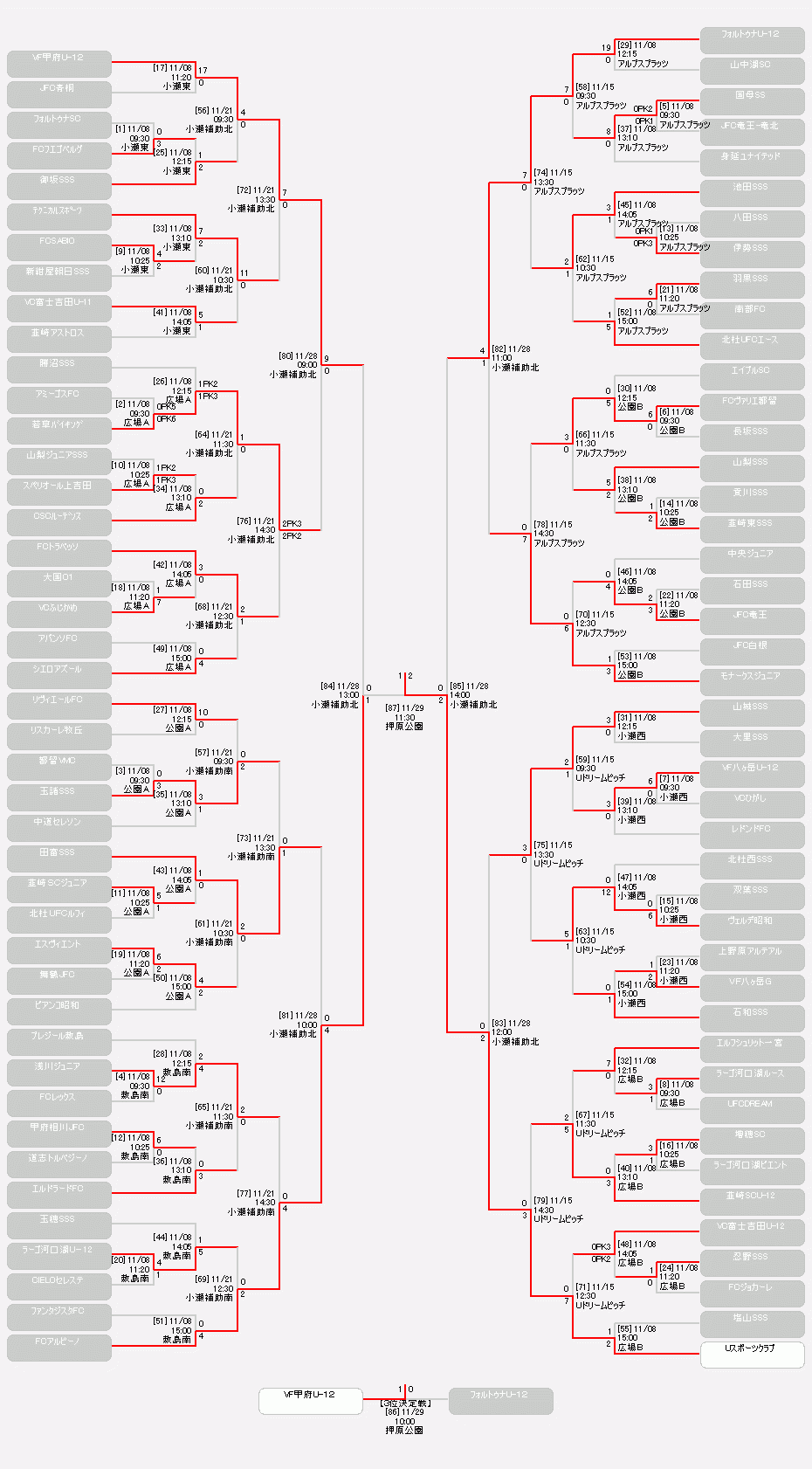 | 3位 / 4位 | ヴァンフォーレ甲府U-12 / フォルトゥナU-12 |