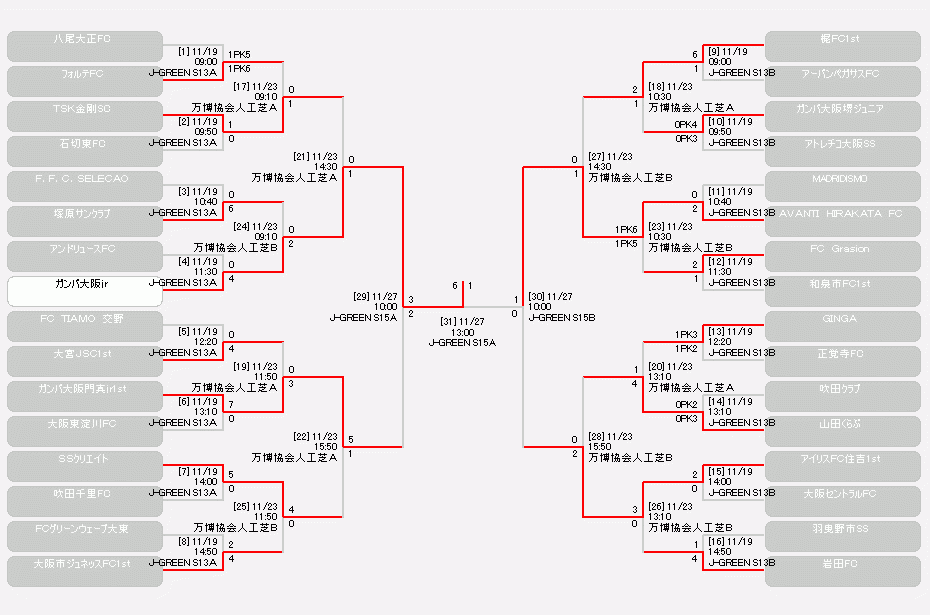 第40回全日本少年サッカー大会大阪府大会決勝戦が11月27日(日)、堺市立サッカー・ナショナルトレーニングセンター(J-GREEN堺)で行われました。