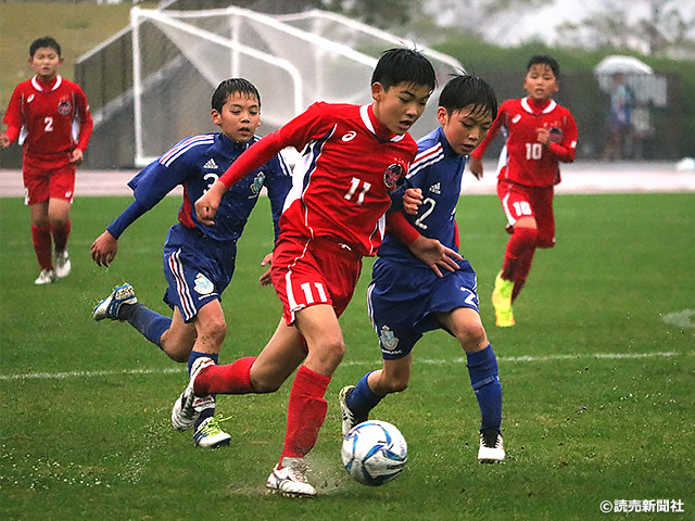 第40回全日本少年サッカー大会島根県大会決勝戦は、トップ、両サイドの突破を起点として迫力のある攻撃を見せる出雲第1代表・大社少年サッカークラブと、粘り強い守備からしぶとく勝ち上がってきた松江第1代表・宍道サッカークラブとの闘いとなりました。