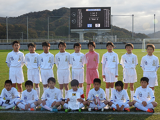 冷たい秋風が吹く中、第40回全日本少年サッカー大会鳥取県大会が、2回目の優勝を狙う鳥取KFCと初優勝を目指す浜坂蹴友クラブの対戦で行われました。